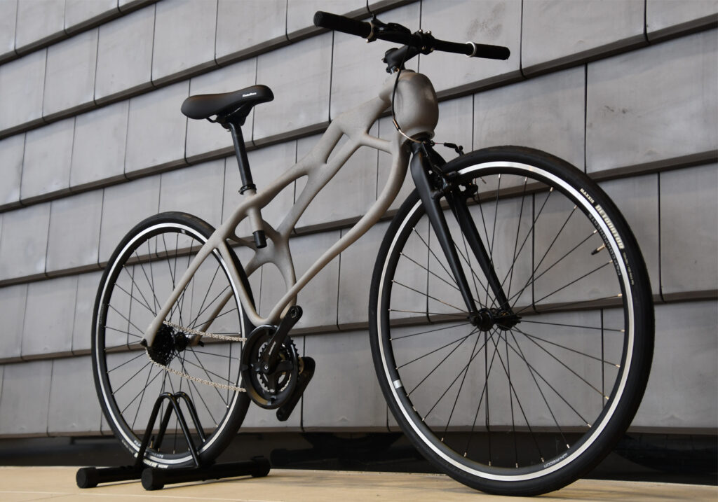 |自転車走行者個人の身体動作特性に基づくフレーム設計をトポロジー最適化により行い,砂型3Dプリンタを活用してフレームを鋳造