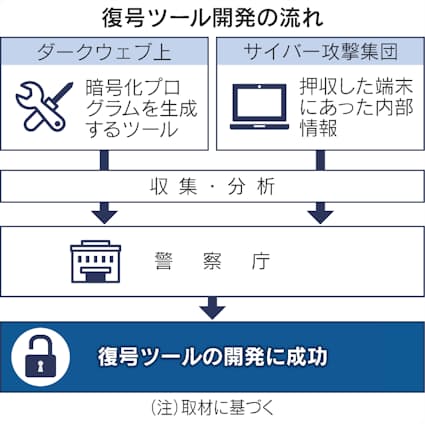 開発は警察庁のサイバー特別捜査部の前身が2023年12月に着手した。暗号化プログラムを生成するためにフォボス側が使っていたとみられるツールを、匿名性が高い闇サイト群「ダークウェブ」上で発見し解析を進めた。